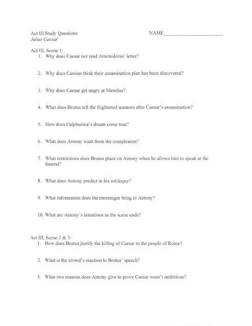 The Tragedy Of Julius Caesar Guided Reading Notes